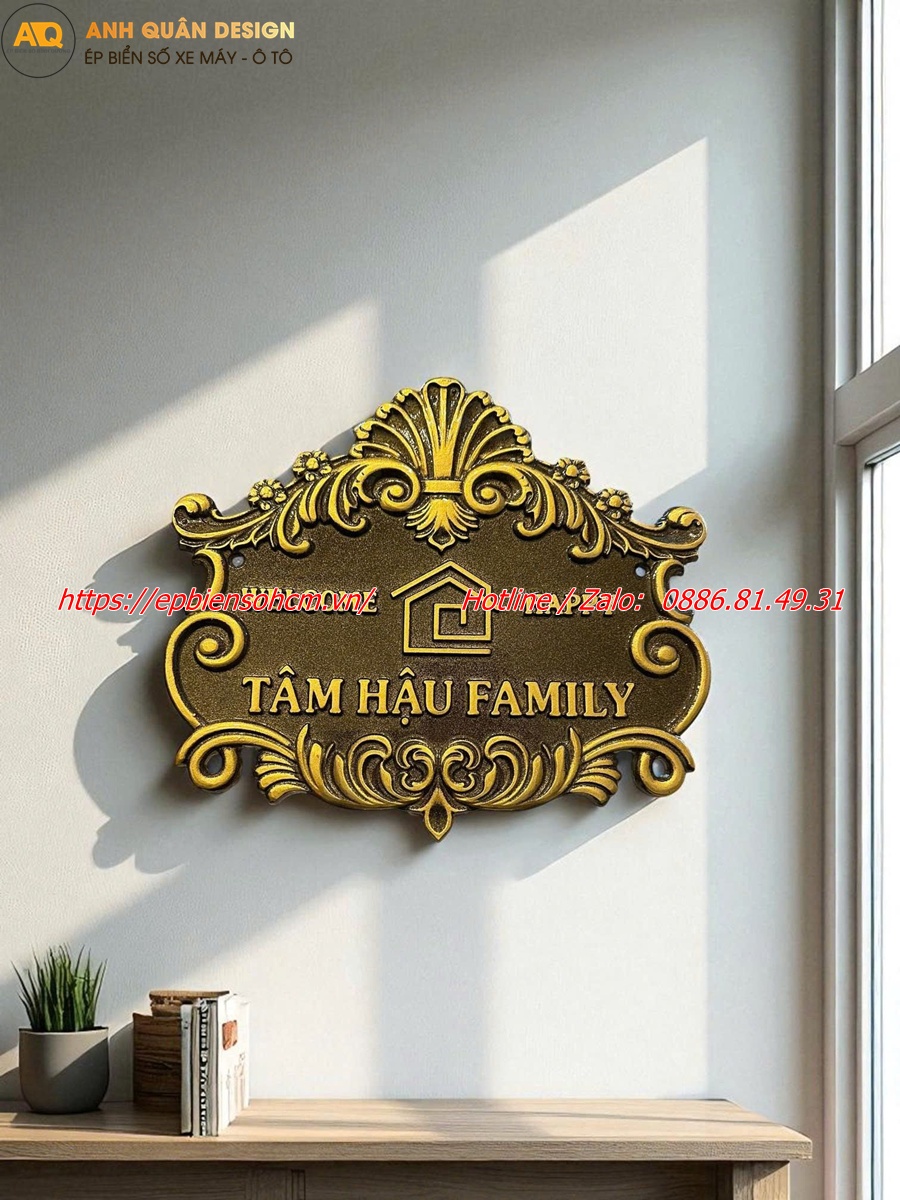 - Phân loại: Hiện nay có hai loại chính là biển gắn trực tiếp lên tường/trụ cổng và biển dạng treo. Biển treo thường có hoa văn phức tạp hơn và giá thành có thể cao gấp đôi loại gắn trực tiếp.