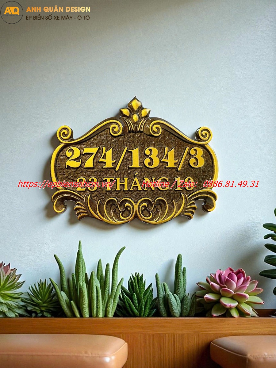 Biển số nhà nhôm đúc không chỉ giúp nhận diện địa chỉ rõ ràng mà còn tăng tính thẩm mỹ cho ngôi nhà. Với hơn 100+ mẫu bảng biển số nhà nhôm đúc đẹp, bền và sang trọng, Ép Biển Số Anh Quân nhận thiết kế theo yêu cầu, giá tại xưởng. Liên hệ Hotline/Zalo: 0886.81.49.31 để được tư vấn và đặt làm nhanh chóng.